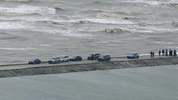刘素琴向南方周末记者回忆,小火车行驶在大坝上,两边都是海。堤坝一侧有路肩遮挡,另一侧完全空敞。车辆在打卡点停留时,她注意到有人坐在地上拍照,还有人抱着孩子靠近堤边。她觉得太危险,叫女儿“过来一点,不要到边上去”。