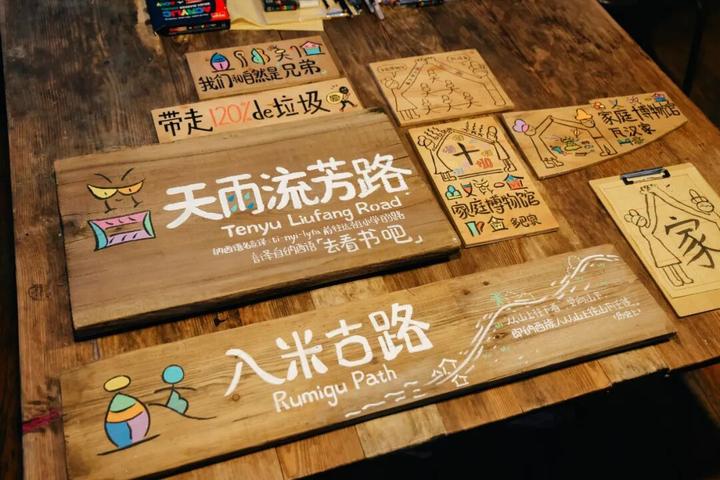 真实存在的困境,恰恰成为创作者们最好的创意抓手。文旅组接到的任务是为关键道路命名、设计家名牌与街巷导视、开发祖母屋家庭博物馆。在导航App上,达祖村境内除环湖公路和亚泸路外几乎一片空白。更棘手的是,村民们对同一条路各有叫法,一条路能冒出十几种“土名”。这些五花八门的称呼背后,埋藏着一代代人的生活记忆与趣味故事。