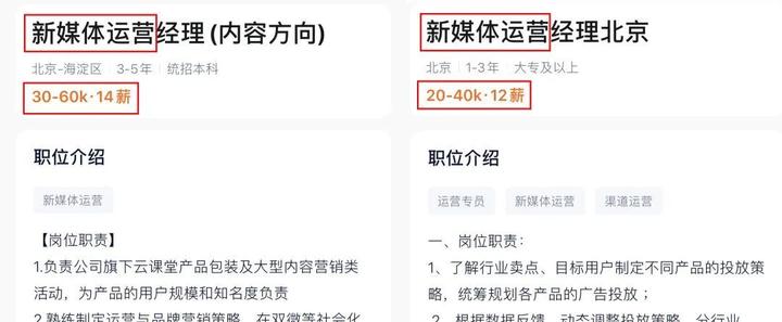 但在各大招聘网站上,有一些新媒体运营岗位的月薪动辄2万到6万,似乎在这个行业继续走下去,并不是完全没有希望。