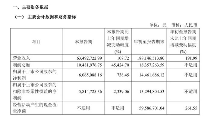 报告显示,恒誉环保前三季度实现营业收入1.88亿元,同比大增191.99%;实现归母净利润1446.17万元,同比扭亏为盈。其中,第三季度公司实现营业收入6349.27万元,同比增长107.72%;实现利润总额1048.20万元,同比增长45424.70%;实现归母净利润606.51万元,同比大增738.45%。