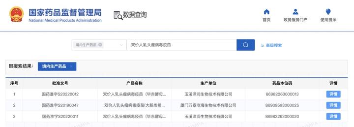 2019年底,首款国产宫颈癌疫苗,万泰生物的二价HPV疫苗馨可宁获批上市;2022年3月,沃森生物的二价HPV疫苗沃泽惠获批上市。