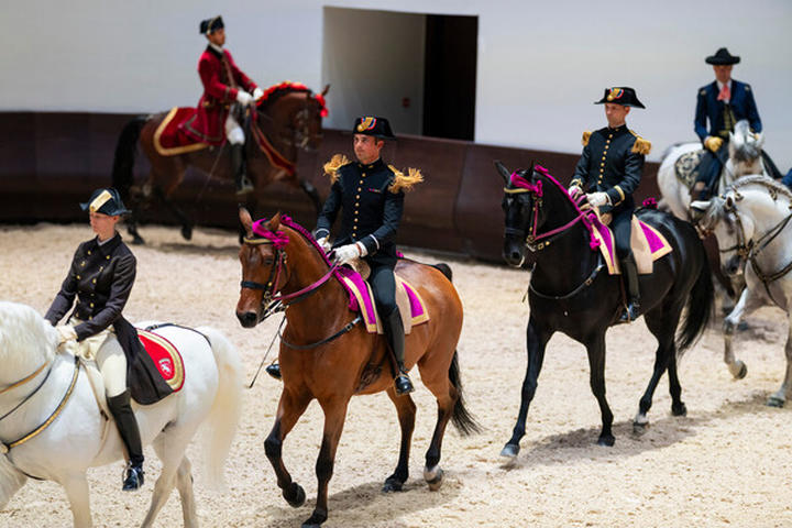 历史上第一次,来自奥地利、西班牙、葡萄牙、法国和现在的阿联酋的所有五所古典马术学校齐聚 阿布扎比皇家马术艺术 ,展示了几个世纪的艺术、精通和文化传统。 西班牙骑术学校在标志性的 白马芭蕾舞团中展示了其著名的Lipizzaner种马。 皇家安达卢西亚马术学校展示了安达卢西亚舞蹈马匹的激情和节奏。 葡萄牙马术学校展示了Lusitano马的精准和优雅,而 Cadre Noir de Saumur 则展现了 高等学校马术和表演艺术的独特表现形式。 阿布扎比皇家马术完成了这一非凡的阵容,展示了自己的骑手和马匹组合,建立了阿联酋第一个古典马术的永久家园,并将阿联酋的传统与永恒的欧洲传统融为一体。