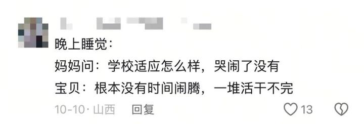 儿子:“我明天学校一堆活呢!
