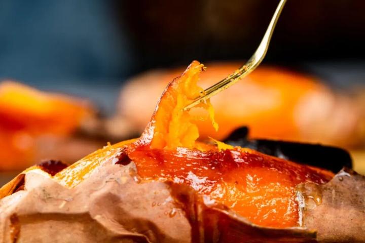 在红薯的烹调方式上,烤红薯的香味物质种类和浓度均比蒸煮和微波更高,红薯颜色会变深,块根失水较多,香味更为浓郁。