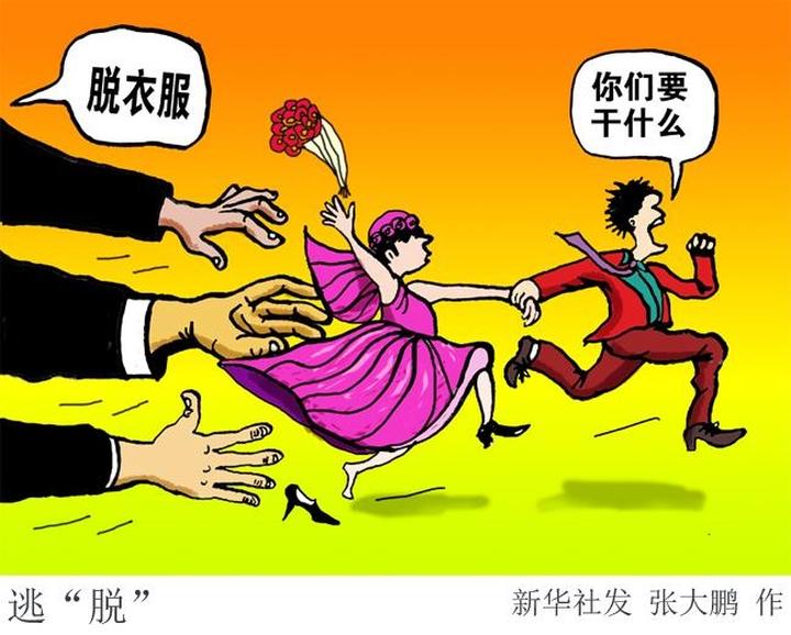 然而,一些地方的婚闹,屡屡触碰道德底线,甚至危及新人和伴娘、伴郎的人身安全。比如,有的以“沾喜气”为名,用胶带捆绑伴娘甚至当众强行亲吻;有的借机对新娘实施猥亵行为;有的将新郎绑在电线杆上泼洒啤酒、酱油。如此等等,不一而足。