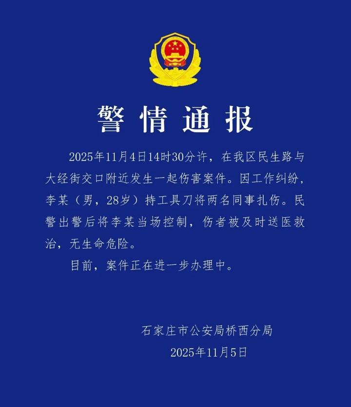 11月5日,石家庄市公安局桥西分局发布一则警情通报: