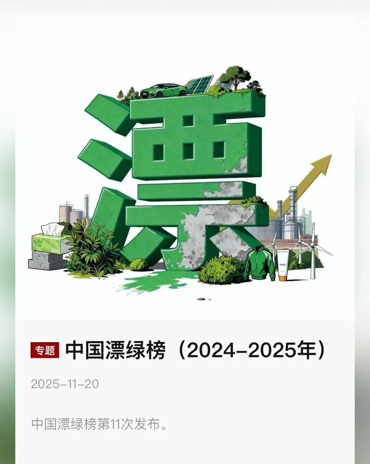 最新一期“中国漂绿榜(2024-2025年)”榜单显示,上榜企业涵盖运动服饰、金融、环境治理、化妆品、新能源电力等多个行业。