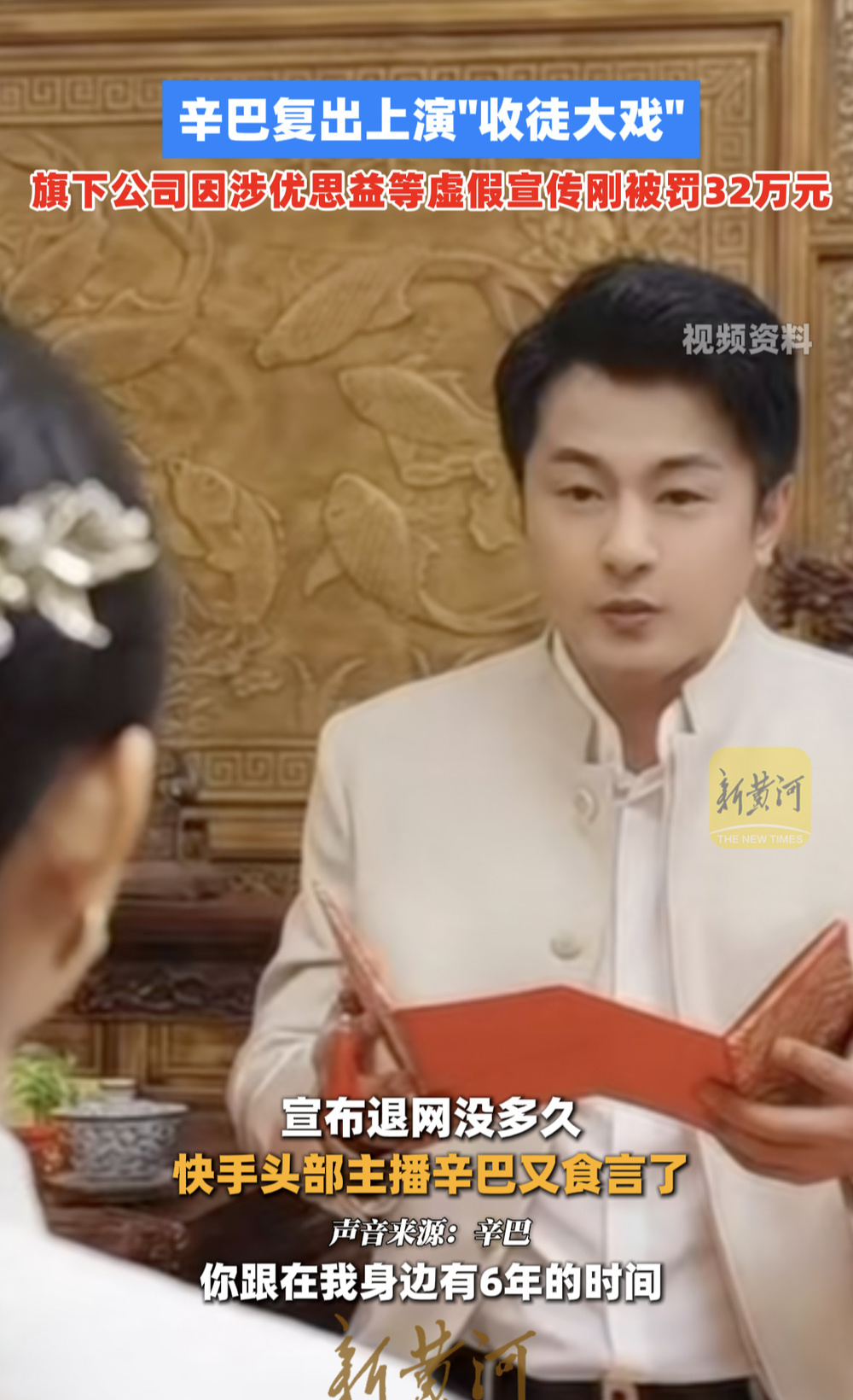 辛巴复出上演"收徒大戏",旗下公司因涉优思益等虚假宣传刚被罚32万