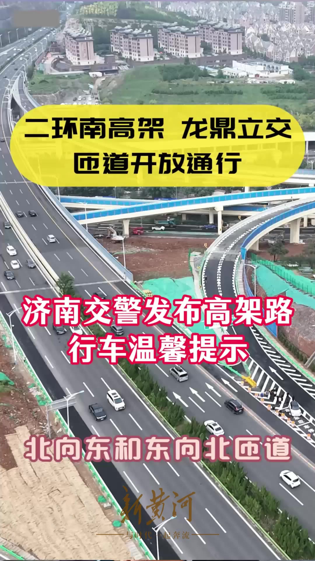 济南二环南高架龙鼎立交两条匝道开放通行,交警发布通行安全提示