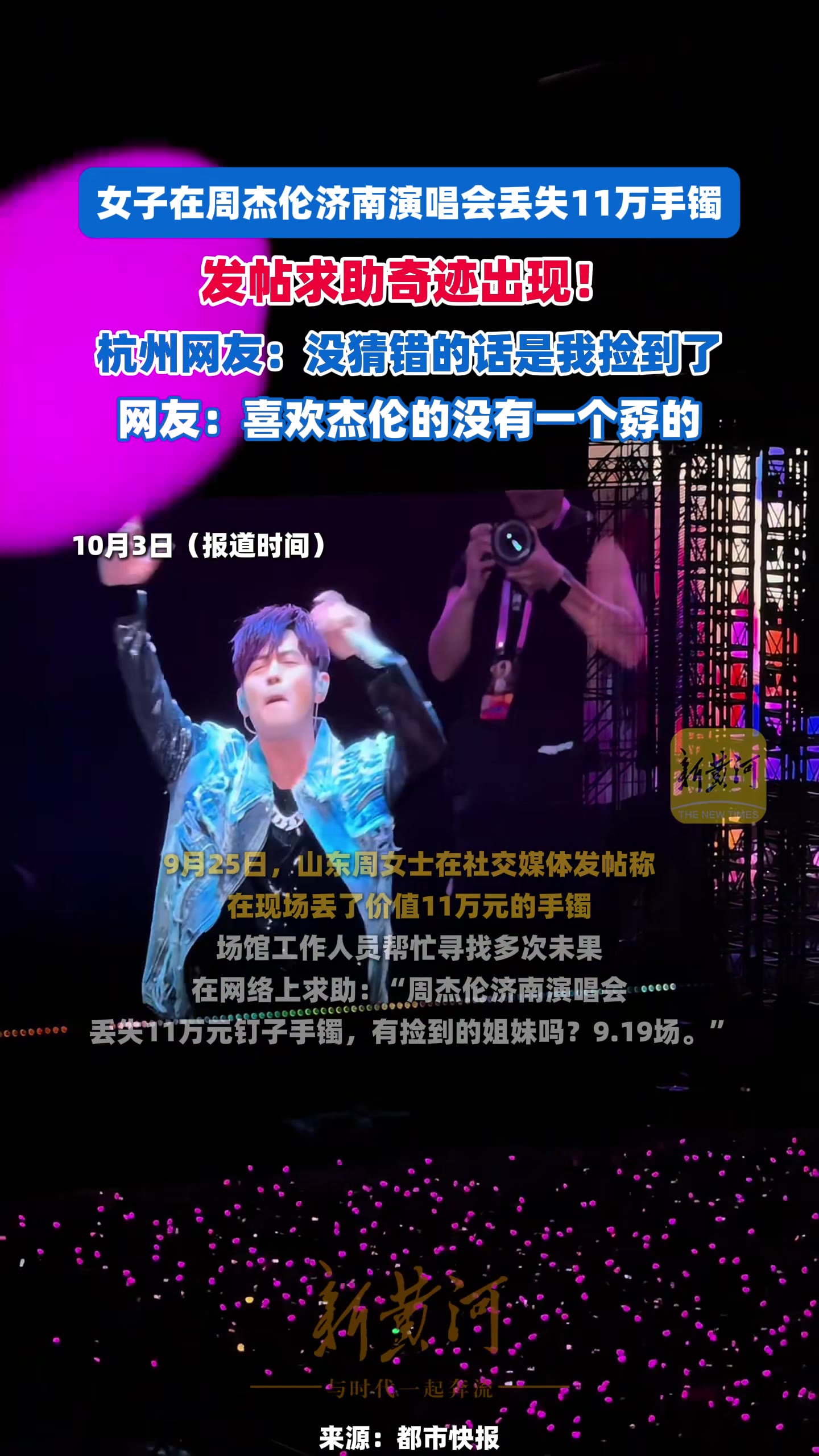 女子在周杰伦济南演唱会丢失11万手镯,发帖求助奇迹出现!杭州网友:没猜错的话是我捡到了,网友:喜欢杰伦的没有一个孬的
