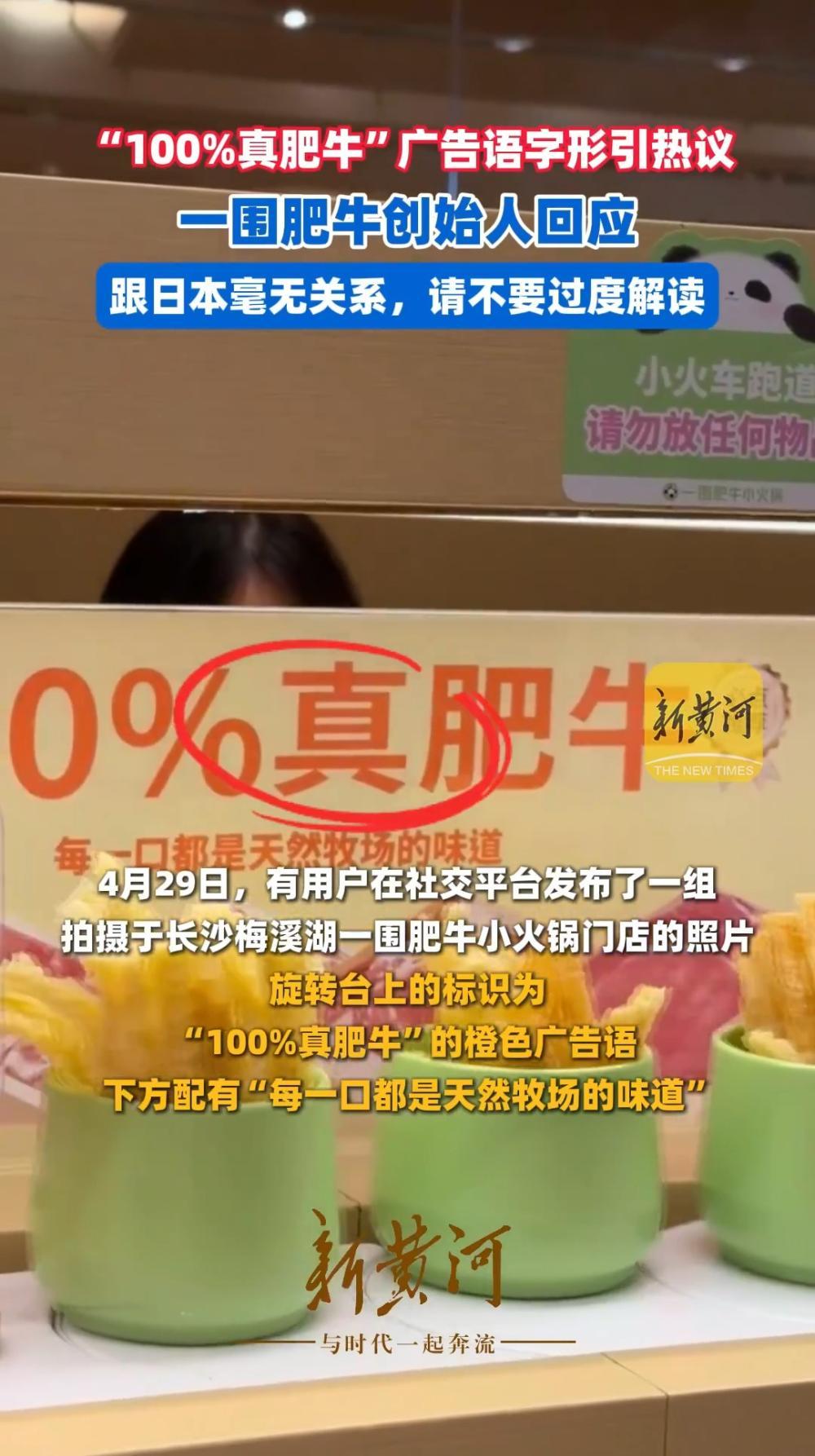 “100%真肥牛”广告语字形引热议,一围肥牛创始人回应:跟日本毫无关系,请不要过度解读