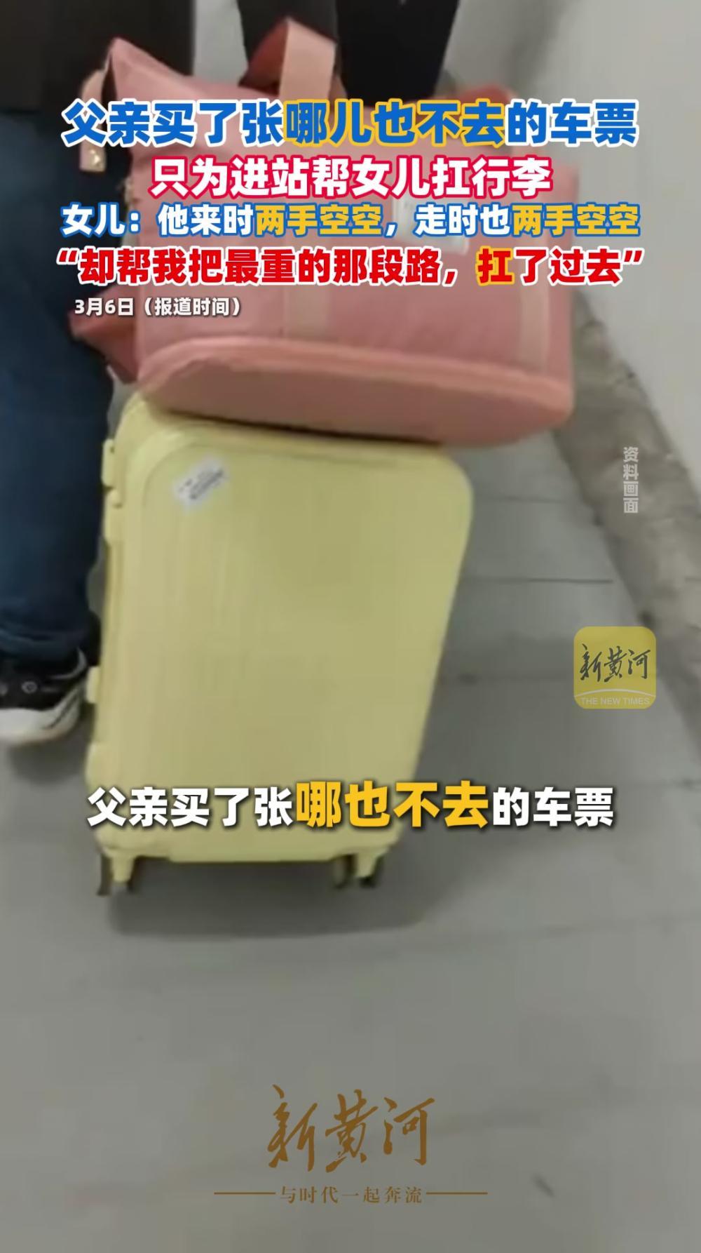父亲买了张哪儿也不去的车票,只为进站帮女儿扛行李