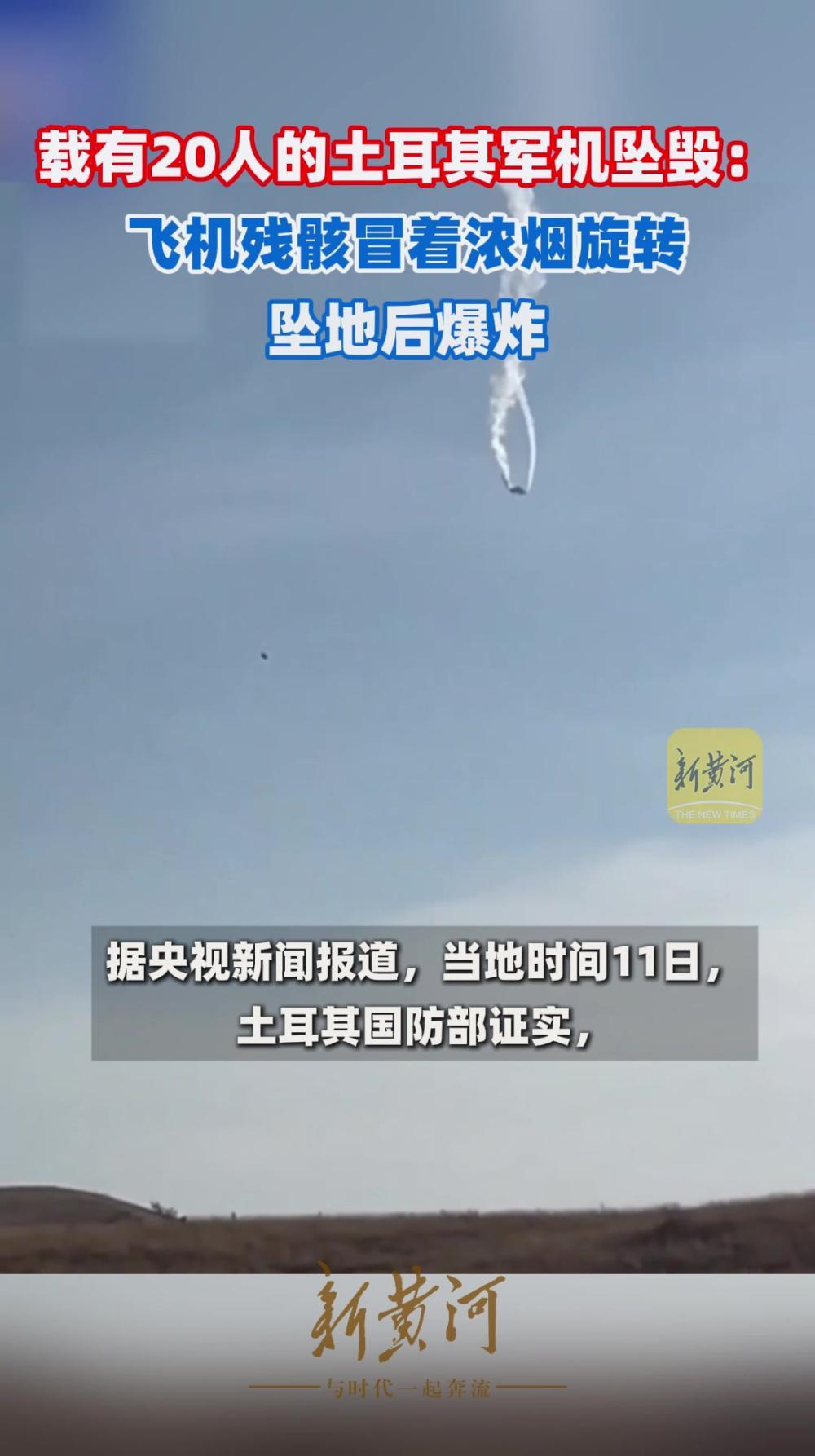 载有20人的土耳其军机坠毁:飞机残骸冒着浓烟旋转,坠地后爆炸