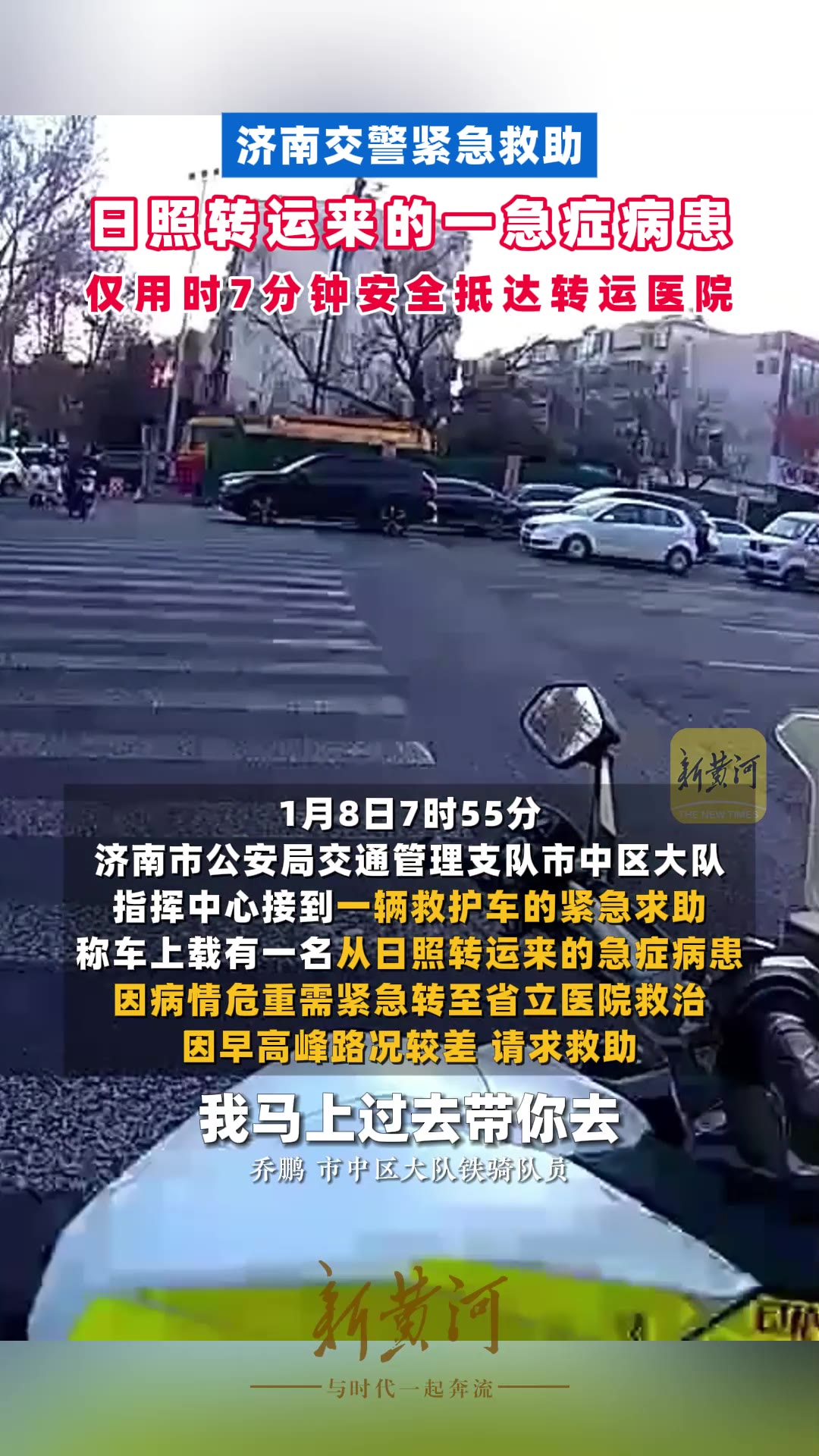 济南交警紧急救助日照转运来的一急症病患,仅用时7分钟安全抵达转运医院