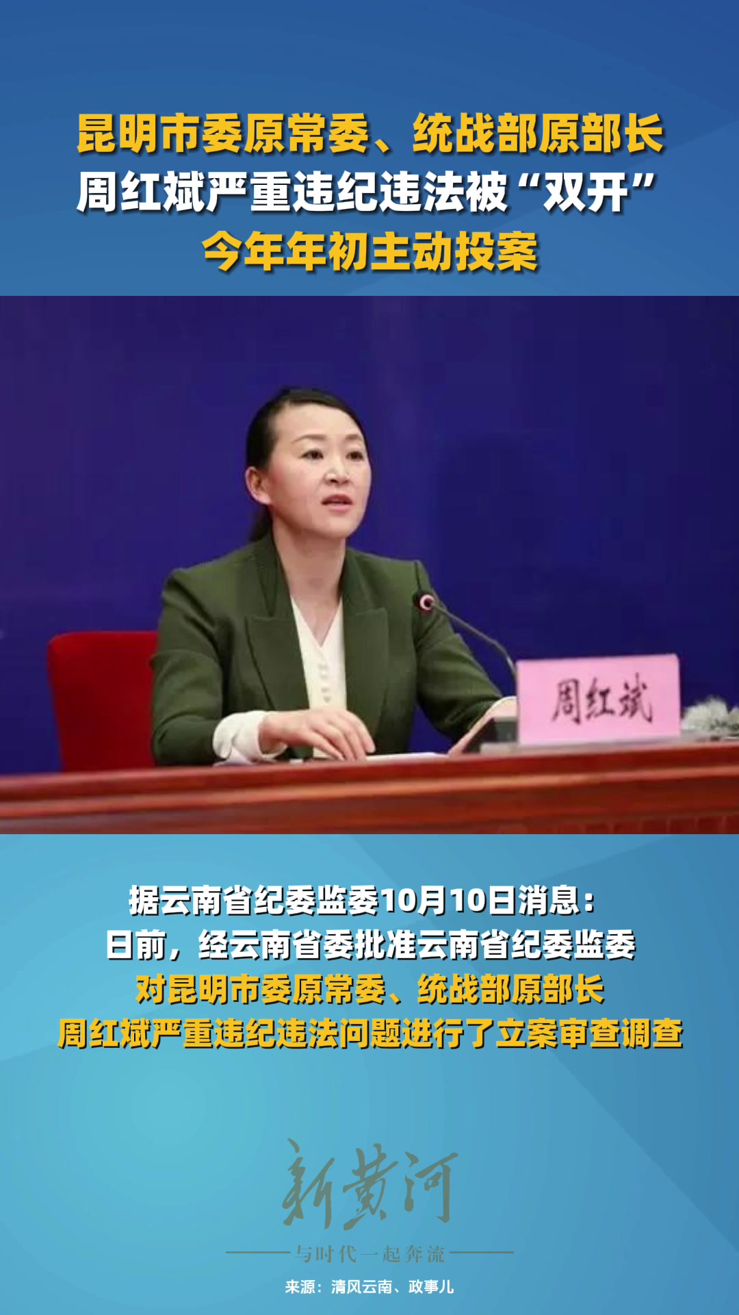云南通报:昆明市委原常委、统战部原部长周红斌严重违纪违法被“双开”!今年年初主动投案