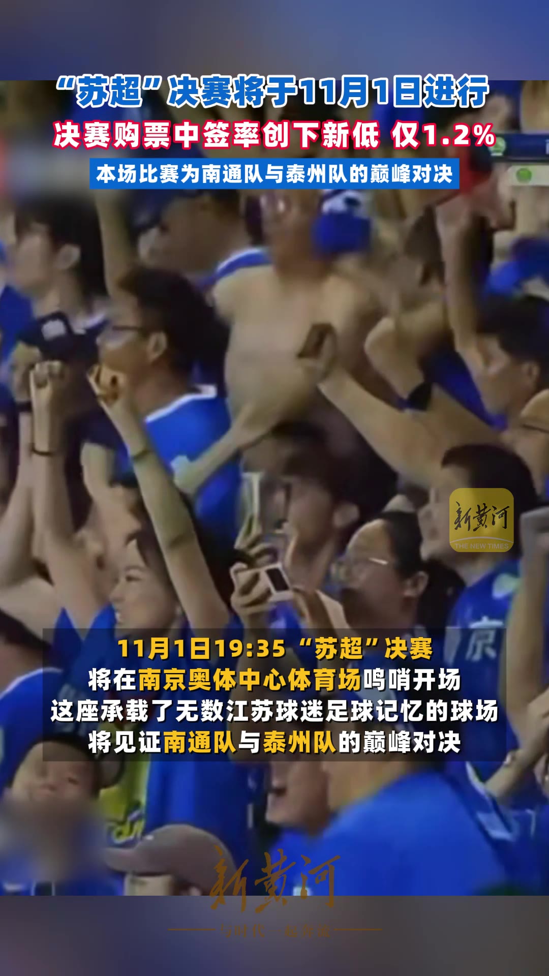 “苏超”决赛将于11月1日进行 ,决赛购票中签率创下新低、仅1.2%,本场比赛为南通队与泰州队的巅峰