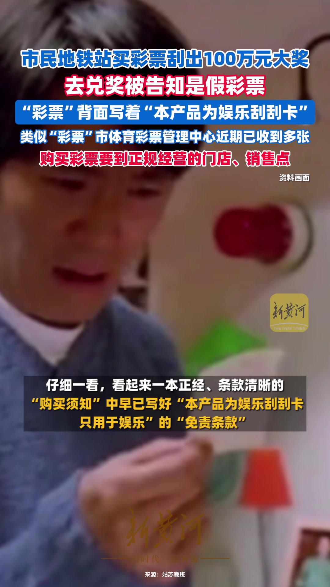 市民地铁站买彩票刮出100万元大奖,去兑奖被告知是假彩票