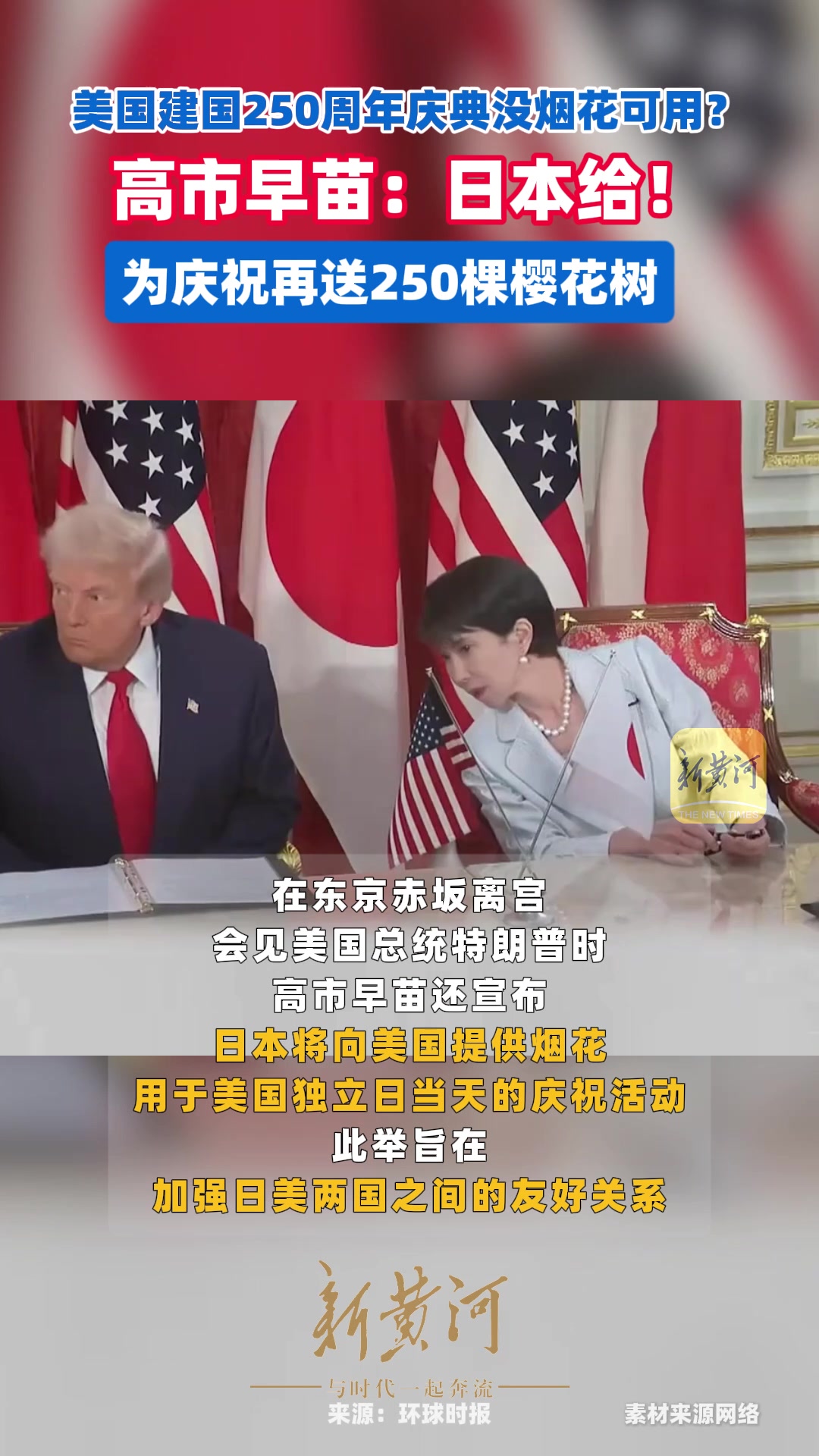 美国建国250周年庆典没烟花可用?高市早苗:日本给!为庆祝再送250棵樱花树