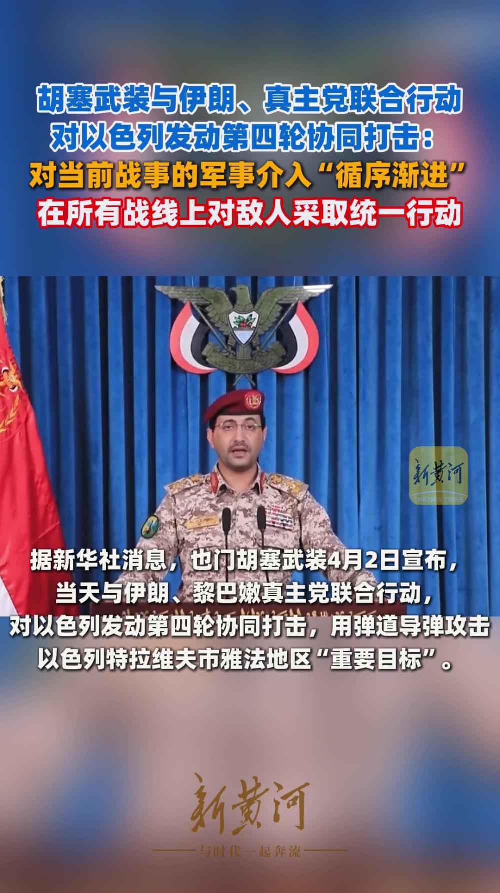 胡塞武装与伊朗、真主党联合行动,对以色列发动第四轮协同打击:在所有战线上对敌人采取统一行动
