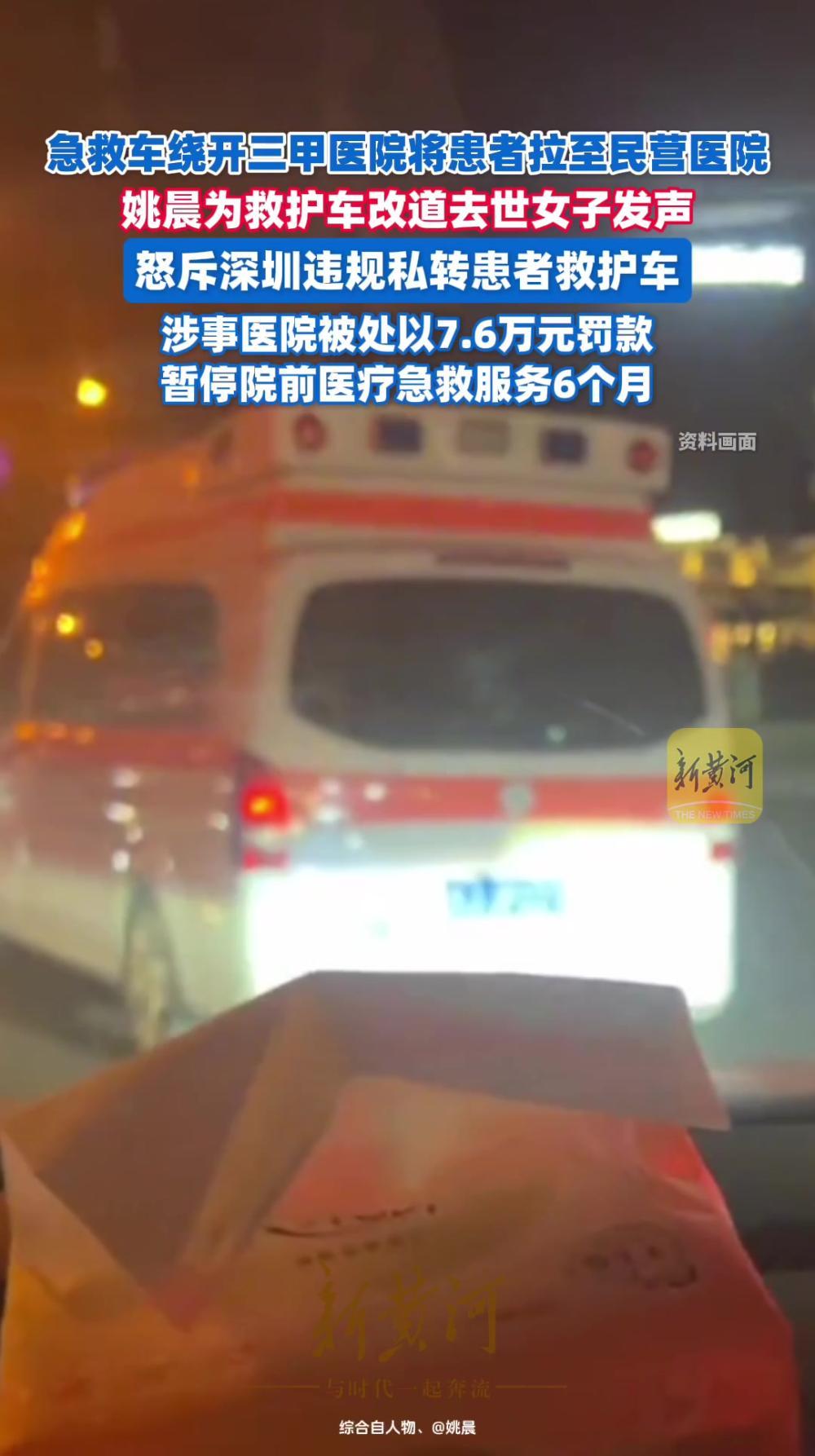 急救车绕开三甲医院将患者拉至民营医院,姚晨为救护车改道去世女子发声
