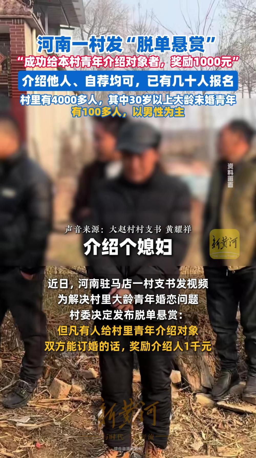 河南一村发“脱单悬赏”:介绍订婚成功奖励1000元,介绍他人、自荐均可,已有几十人报名