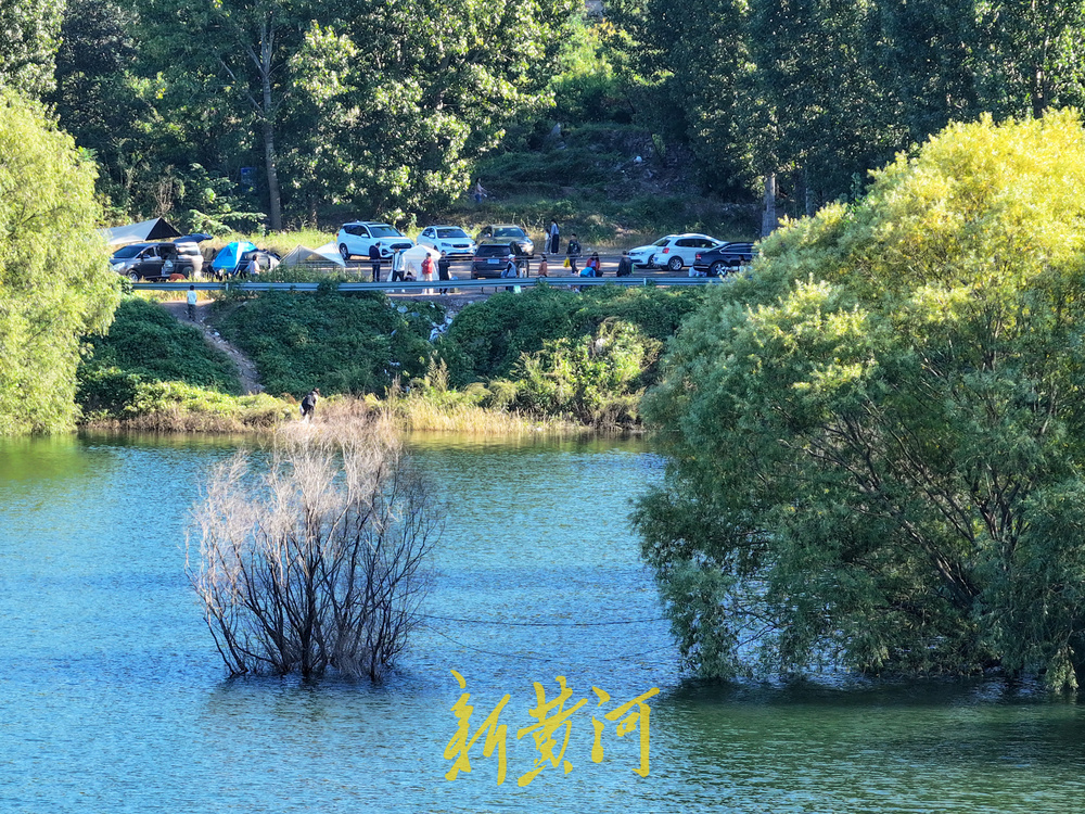 人们在水库旁露营野餐,看山水相连,感受秋季大自然的美丽与宁静,让心灵在这静美的景色中得到放松。