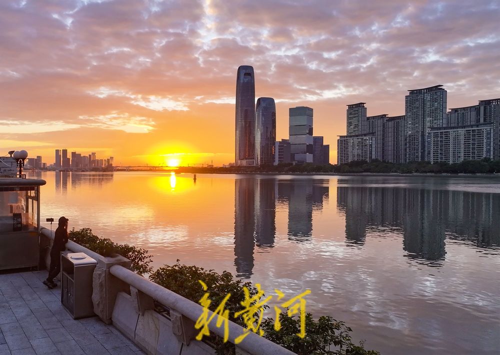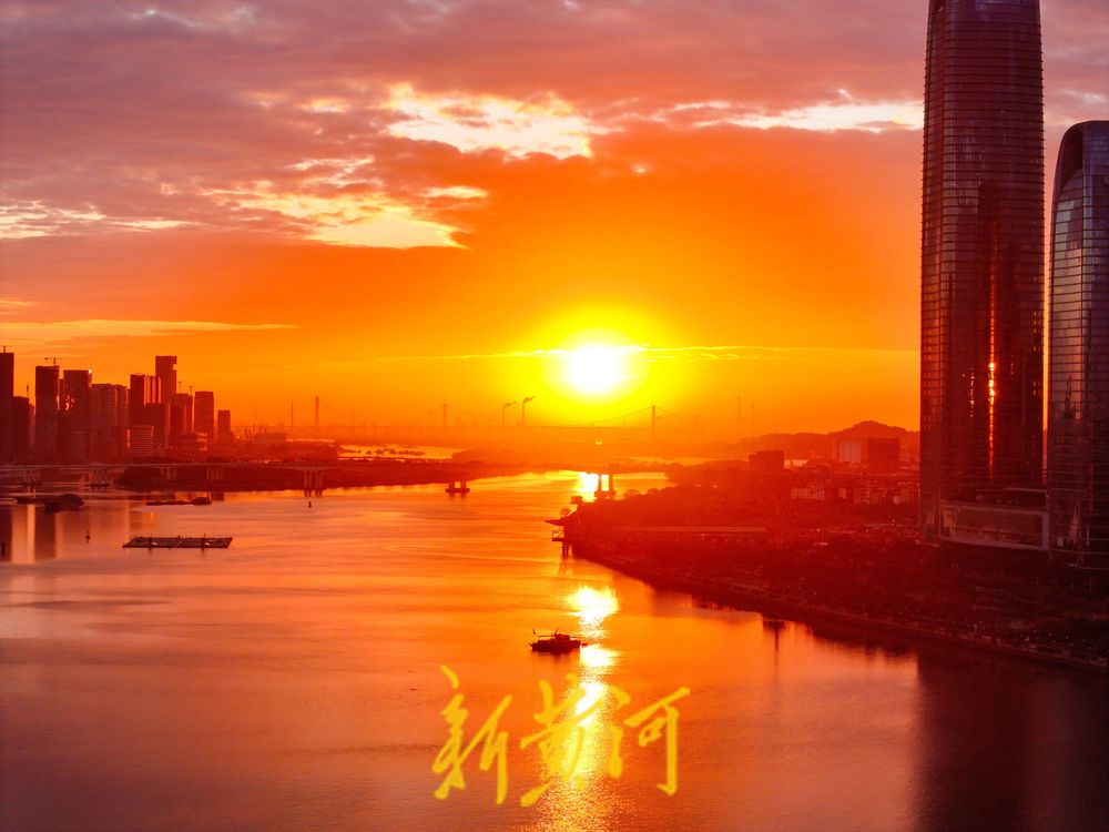 11月28日,广州珠江两岸迎来了一场壮丽的日出景象。清晨日出时分,气温舒适,空气清新,珠江上空被染成橘红色,云层和霞光相伴,共同演绎着晨曦时刻的浪漫。
