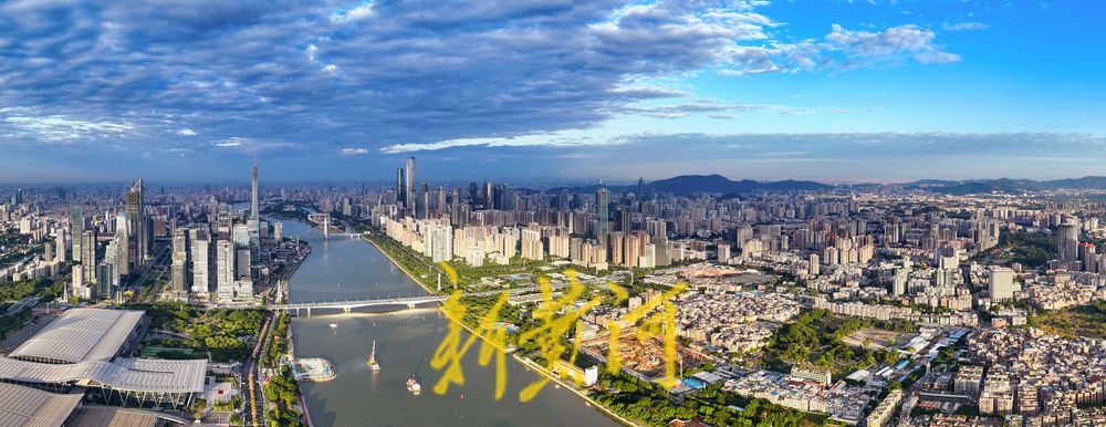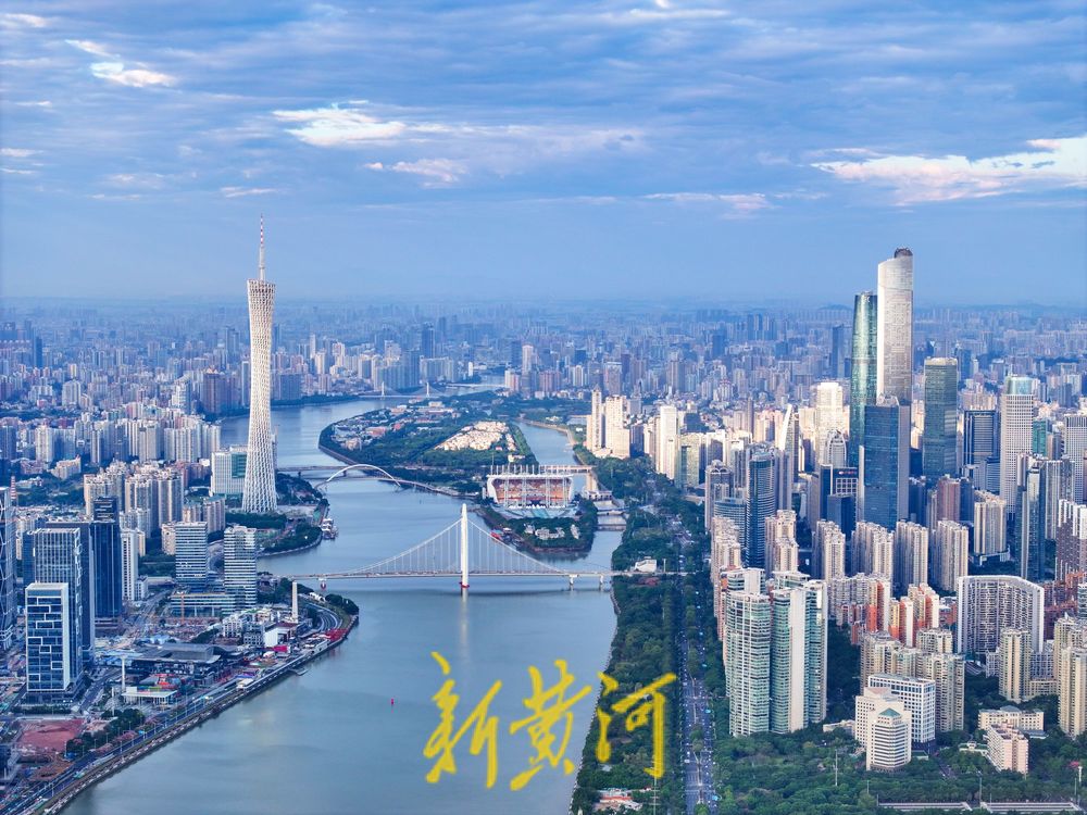 珠江畔的天际线被朝阳映照得格外醒目,整个城市仿佛在这一刻被点亮。 火红的太阳从东方的天际升起,将广州塔等地标性建筑染上了火红的色彩,珠江水也变成了金色,与蓝天、红日交相辉映,形成一幅绚丽多姿的壮美画卷。