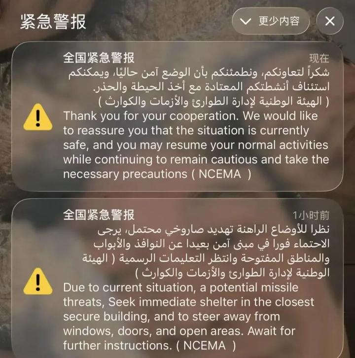 在阿布扎比攻读博士学位的王先生说,最开始有点紧张,因为没有在战争环境中待过,但因为周边外国同学都比较淡定,也就平静下来了。目前市区情况也比较平稳,学校让大家居家上网课到3月4日,暂时不考虑回国事宜。“今天阿布扎比听到两三声拦截的声音,港口和机场没有被炸的消息,市区也比较平稳,基本没什么事。机场在今天下午开始卖票了。我觉得还挺安全的,真的到那种情况下,大使馆会组织撤侨的,他们已经拉了一个领事保护群,有消息就告诉我们了。”