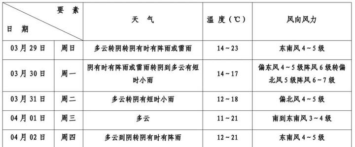 多云到阴,今天半夜至明天阴有时有阵雨或雷雨,局部地区雨量可达大雨,今天半夜到明天早晨局部地区有雾,东南风4—5级,今天半夜转偏东风3—4级,明天上午起增大至4—5级阵风6级,沿江沿海地区5级阵风6—7级。相对湿度95%—80%,气温14—18℃。