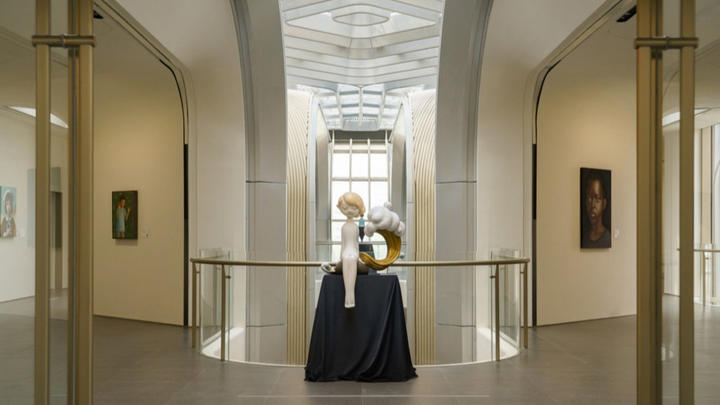 上海嘉艺术位于普陀区中江路677弄51号,扎根长风生态商务区核心位置,是宸嘉发展集团特邀普利兹克奖得主诺曼·福斯特率团亲自设计,场馆设计模拟花朵叶脉扎根地面、向天空延展的生长轨迹,将“由内而外”的结构美学绽放为花瓣立面。展馆总建筑面积约5000平方米,南北双核布局,设有专业级艺术品陈列展厅、数字展厅、文创商店与艺术沙龙,为公众提供了可感、可触、可亲近的日常活动空间。