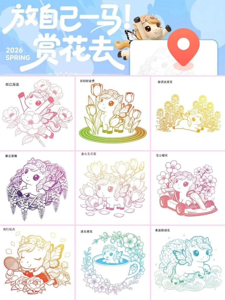 前往全市9大区任意一个指定游客中心,免费领取「春日集章打卡页」,并进行集章。