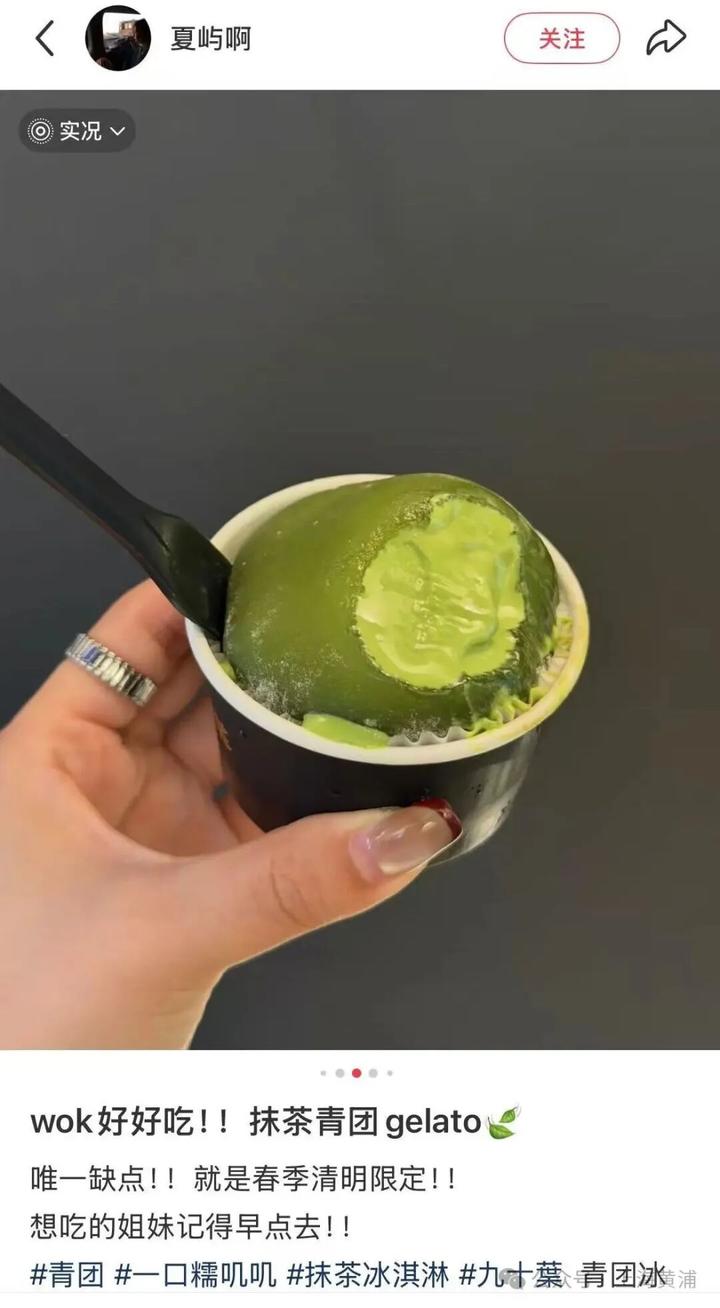 原标题:《好热!是谁还没吃过限定款青团gelato?和清明假期太配了,小红书上刷屏……》
