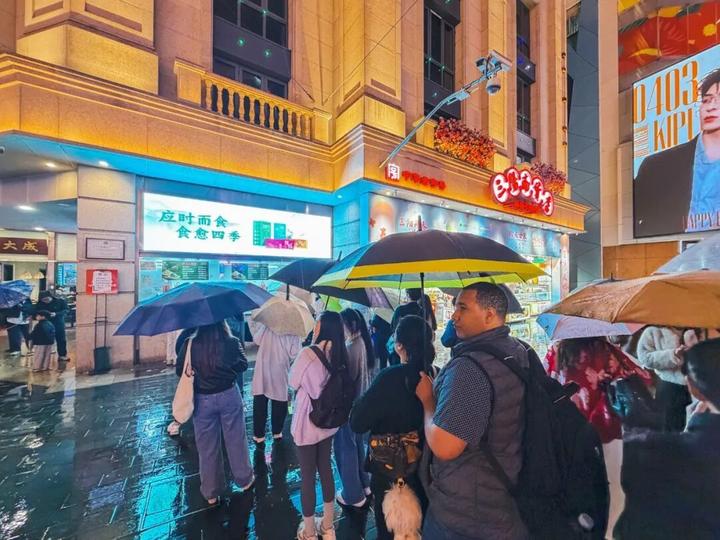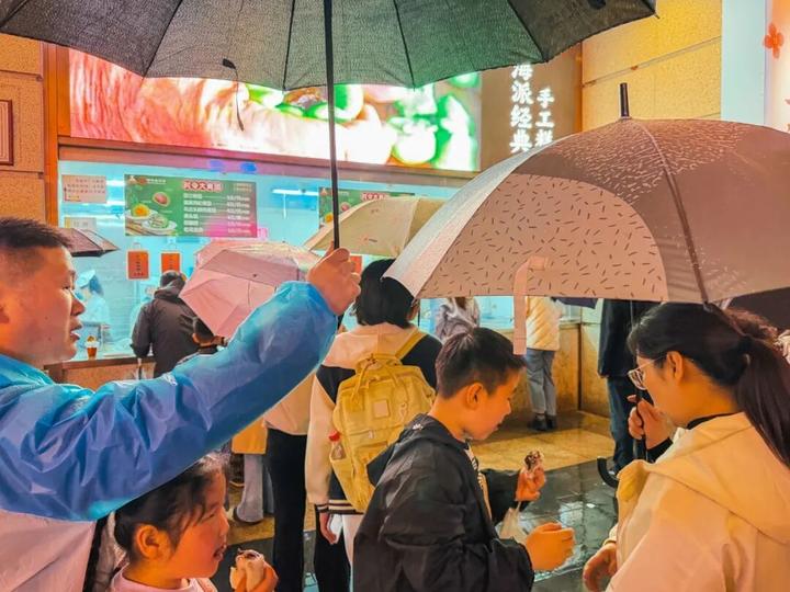 虽已入夜,且雨势未歇,这里的人气却丝毫未减。记者亲身体验排队,发现相较于白天的长龙,晚间人流虽有减少,但仍需等候10分钟左右才能买到。队伍中,既有刚下班的市民,也有慕名而来的游客,大家有序排队,偶尔低声交流着心仪的口味。