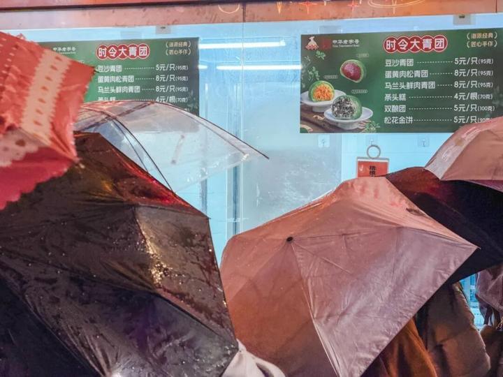 雨越下越密,排队的人群却没有散去。一盏盏雨伞下,藏着上海人对春日的热爱,对传统的坚守。一口软糯的青团,是清明的仪式感,也是刻在上海人骨子里的春日滋味。即便雨夜等候,当捧起那盒碧绿的青团,所有的奔波与等待,都化作了满心的欢喜。