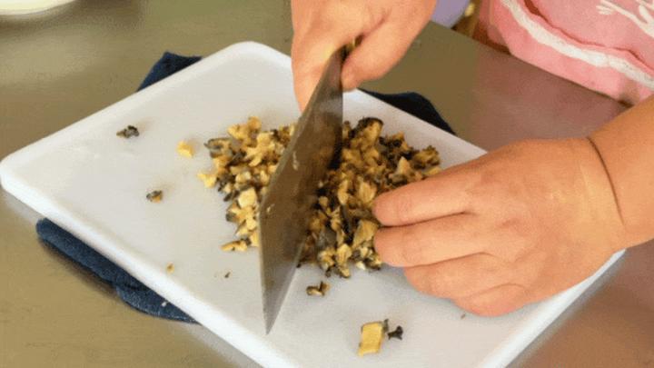 嬢嬢告诉我们:这里有个窍门,肉不能塞得太满,不然烧好了嗦不出来,那就要“急煞人”了。