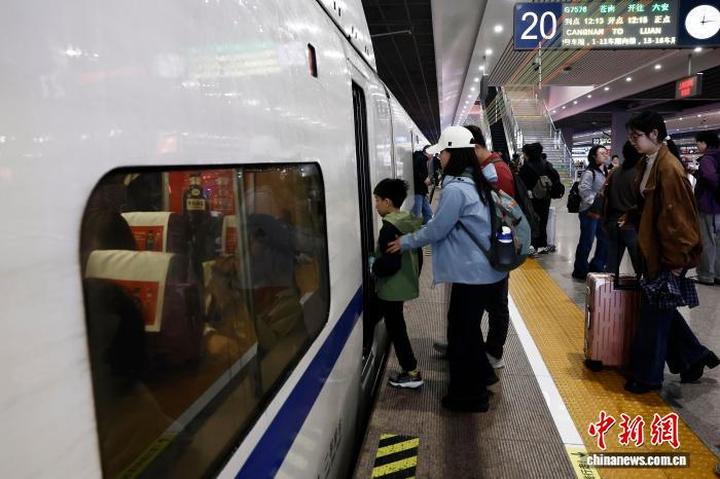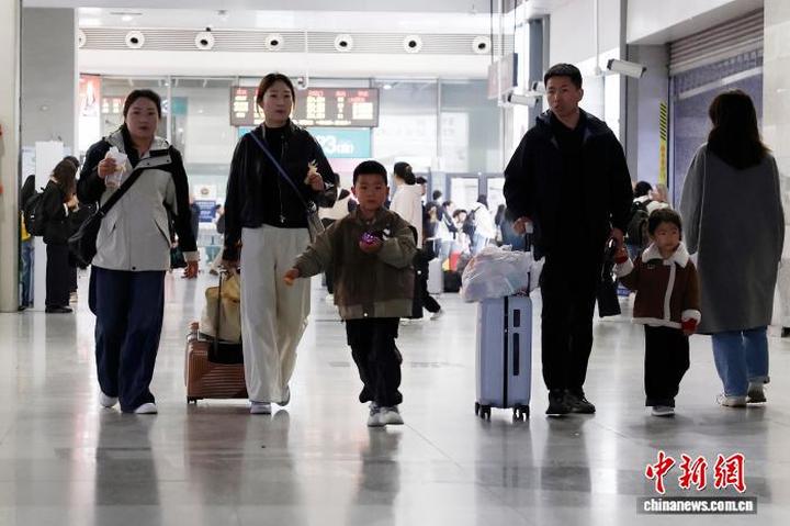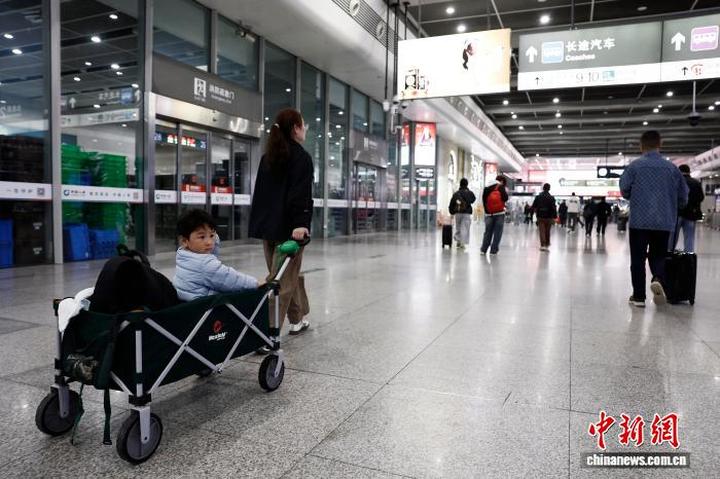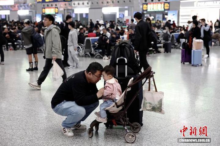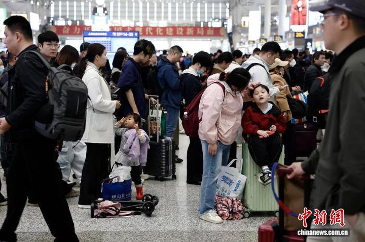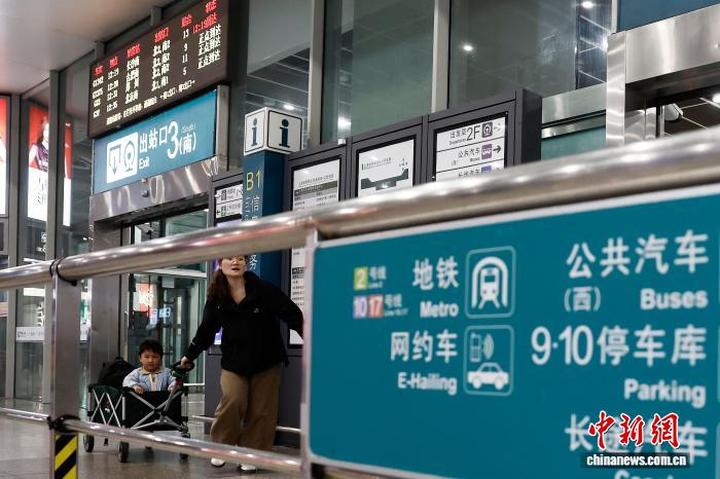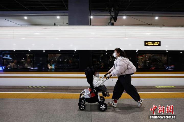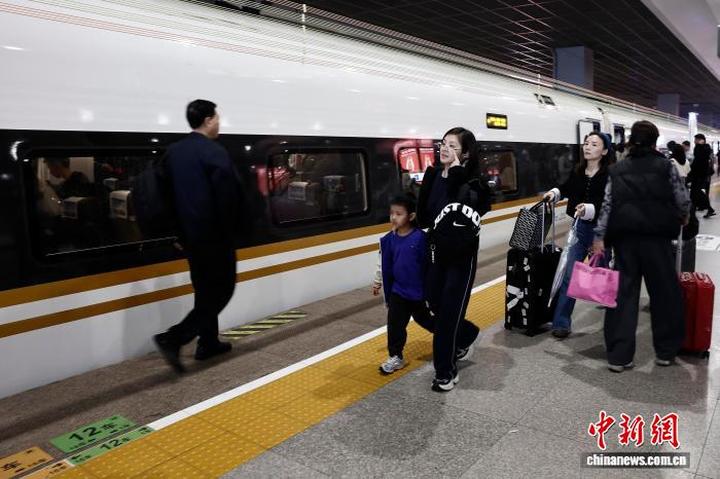 4月3日,在铁路上海虹桥站,旅客带着孩子乘坐高铁列车前往自己的目的地。中新社记者 殷立勤 摄