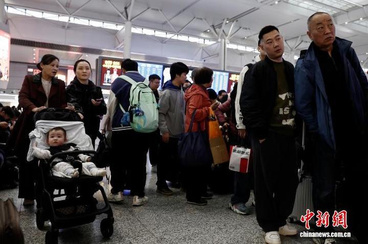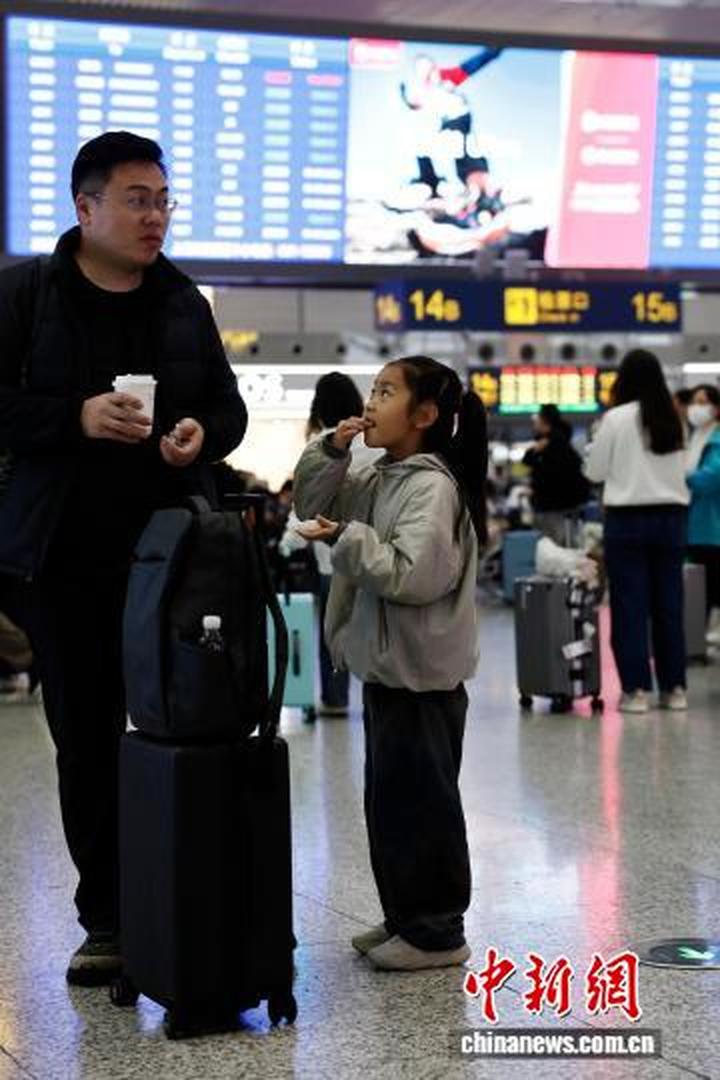 4月3日,旅客带着孩子在铁路上海虹桥站候车大厅等待验票上车。得益于上海周边省市春假政策,亲子、家庭组团出游热情高涨。当日,铁路上海站(下辖上海站、上海南站、上海虹桥站、上海松江站、上海西站、南翔北站、安亭北站、安亭西站、金山北站、练塘站)预计将发送旅客60.5万人次。各站区儿童、学生旅客相较往年有明显增加,其中儿童票售出3.6万张,较去年同期增长70%。中新社记者 殷立勤 摄