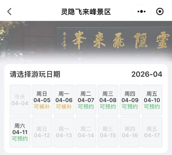 杭州灵隐飞来峰景区预约小程序显示,今明两天(4月5-6日)预约名额已进入候补状态。提醒广大游客,根据景区预约规则,游客可提前7天预约,或最晚在入园前一日20:00前进行线上候补,按序配给,先到先得。在未预约的情况下,当日无法进入景区,请大家一定提前安排好行程,切勿跑空。