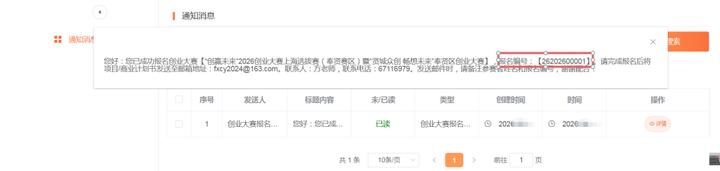 报名提交成功后请回到首页再次登录,及时查看站内信确认报名信息,并 记录报名编号 。