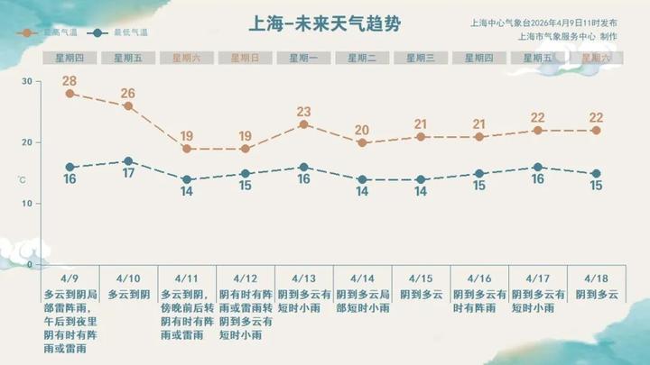 天气趋势:周五阳光在线,气温在17~26℃之间,总体较舒适。周六傍晚起春雨重返申城,其中周六夜间至周日白天降水较为明显,气温回落,预计最高气温在19℃左右。下周西南暖湿气流依旧活跃,阴雨天气仍是“常客”。湿度偏高,降水间歇还可能出现低能见度天气。春日天气多变,请关注临近的预报信息,及时掌握天气动态。