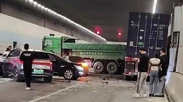上海外环隧道北线(浦东往浦西方向)突发事故