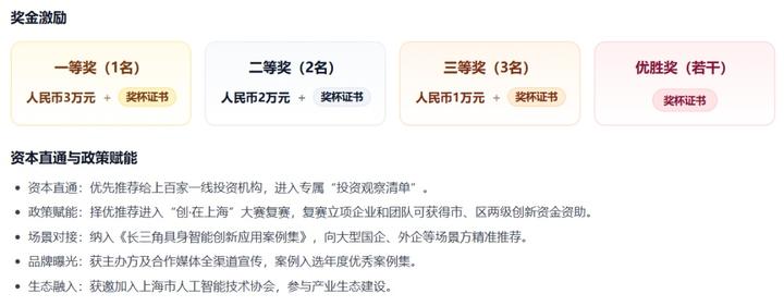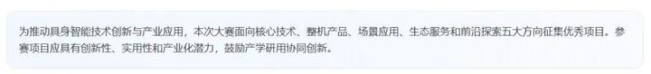 为深入贯彻国家"人工智能+"战略部署,为积极响应国家加快发展新质生产力的战略部署,全力服务上海建设具有全球影响力的科技创新中心,在大赛组委会指导下,上海市人工智能技术协会特此举办“创·在上海”国际创新创业大赛——具身智能专业赛。本届大赛旨在搭建一个“技术—产业—资本”高效对接的市级平台,聚焦核心技术、整机产品、场景应用、生态服务及前沿融合五大方向,广泛征集具有突破性与商业化潜力的创新项目,以赛聚智、以赛促创、以赛兴业,全力推动创新链、产业链、资金链、人才链深度融合,加速构建开放协同、富有韧性的具身智能产业生态。
