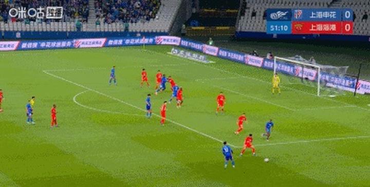 第52分钟,马纳法传中,拉唐头槌破门,申花1-0海港。