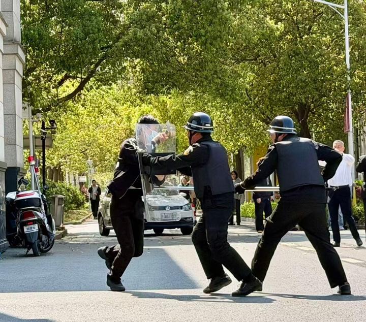 近日,上海中侨职业技术大学南大门前上演了一场紧张逼真的反恐防暴演练。“不好!有暴徒持刀闯入!”一阵急促的呼救声划破校园宁静,学校保安反应迅速,手持防暴盾牌、钢叉火速上前与“暴徒”周旋阻拦,同时第一时间报警;现场老师启动预案开展疏散,有序引导学生转移,同步做好情绪安抚和舆情管控。金山区张堰派出所民警火速驰援,迅速合围、果断出击,将“暴徒”制服,整个流程环环相扣,让在场观摩者直呼“身临其境”。演练后,民警手把手教学防暴器械使用和避险技巧,中侨大学艺术学院党员大学生、桑园村村民代表及保安踊跃实操,锤炼应急本领。