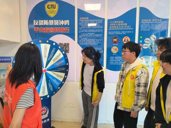 演练的紧张氛围尚未消散,校园平安驿站前已人头攒动。镇平安办、党群办工作人员搭建的宣传展台前,醒目的国家安全宣传版面格外吸睛,工作人员发放宣传折页,用接地气的话语,将国安、反邪、反诈、反恐、网络安全、见义勇为等专业知识讲得通俗易懂。平安驿站内,趣味大转盘抢答环节热闹非凡,“全民国家安全教育日是哪一天?”“维护国家安全我们能做些什么?”等问题抛出后,学生们踊跃举手、争先抢答,在欢声笑语中潜移默化筑牢思想防线。一旁的平安文艺作品展示区同样吸睛,遒劲的书法、创意海报将平安法治与艺术美感相融,让大家在欣赏中接受安全警示教育。
