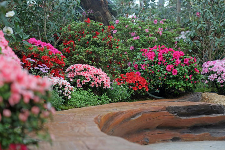 上海植物园主会场“珍奇植物花园”板块亚高山植物馆中展出的高山杜鹃。