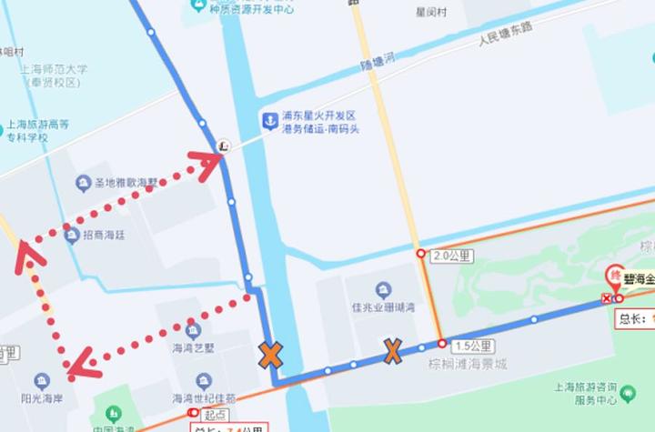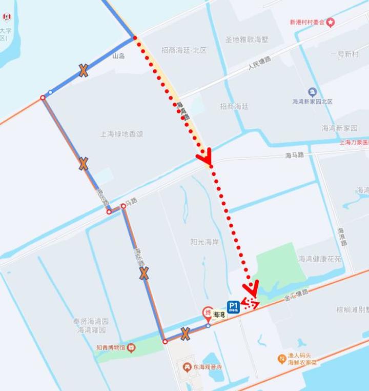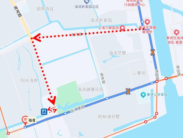 绕行期间临时取消站点:金汇塘路海湾路、金汇塘路海浪路、金汇塘路海鸥路(均为双向)。