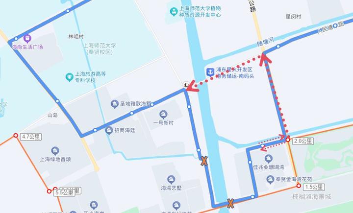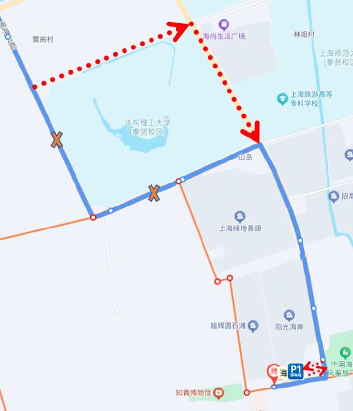 绕行期间临时取消站点:珊瑚湾小区、规划路、金汇塘路规划路、奉炮公路海马路、海湾行政服务中心、华东理工大学、海乐路海思路、海乐路海马路、海湾(均为双向)。