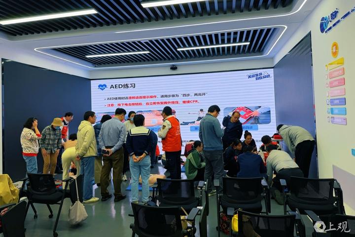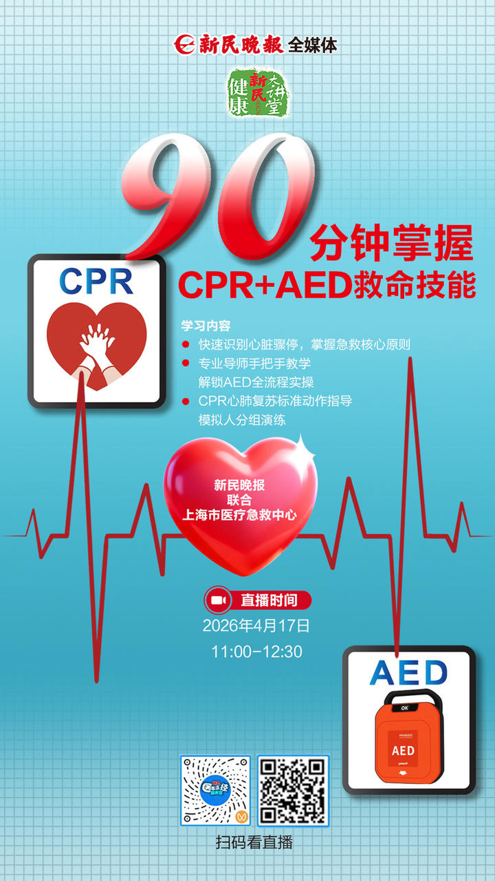 在突发心脏骤停面前,每一秒都至关重要。昨天(17日),由新民健康大讲堂、新民晚报读者俱乐部与上海市医疗急救中心共同发起的“救命技能零距离”读者服务活动举行。活动通过“线下实操+线上直播”的方式,让零基础市民也能在短时间内掌握心肺复苏和AED使用的关键技能。